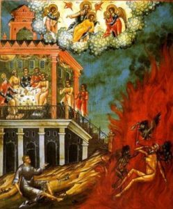 ¿Por qué es tan difícil para los ricos entrar al Reino de los Cielos? En el Evangelio según San Lucas, nuestro Señor da una indicación del porqué los ricos reciben una advertencia tan severa: «¡Ay de ustedes que son ricos, porque ya tienen su consuelo!» (Lucas 6,24). Esta declaración corresponde a la parábola de nuestro Señor, acerca del hombre rico que estaba vestido púrpura y lino fino, y cada día hacía espléndidos banquetes, mientras que en su puerta cubierto de llagas, había un hombre pobre llamado Lázaro, que ansiaba saciarse con lo que caía de la mesa del rico. Cuando el pobre hombre murió, fue llevado por los ángeles al seno de Abraham. (Una indicación de la doctrina del Limbo, donde los justos del Antiguo Testamento esperaban la venida del Salvador). El hombre rico también murió y fue sepultado en el hades, en medio de los tormentos. Como explicación del porqué ocurrió esto, Abraham le dice al hombre rico: «Hijo, recuerda que has recibido tus bienes en vida y Lázaro, en cambio, recibió males; ahora él encuentra aquí su consuelo, y tú, el tormento». (Lucas 16, 19-31). Estas declaraciones de nuestro Señor indican que los ricos están en peligro, «porque ya han recibido su consuelo». Esto concuerda con lo que dijo nuestro Señor en otro lugar, donde advierte sobre orar, ayunar y realizar acciones de caridad en aras de recibir elogios por parte de los hombres. Él dice: En verdad les digo que ya tienen su recompensa y no recibirán ninguna recompensa del Padre Celestial. (Cf. Mt 6, 1-6). Esto presenta un principio importante en la vida espiritual, no se puede tener lo mejor de ambos mundos.