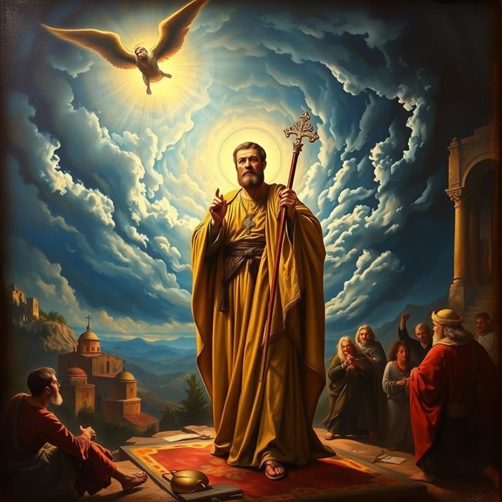Desde tiempos antiguos, un santuario consagrado a los santos Ángeles embellecía la sierra de Gárgano; los habitantes de la ciudad de Siponto, situada al pie de las montañas, cultivaban con entusiasmo un gran fervor y veneración por el Arcángel Miguel. Según cuenta la tradición,2 en cierta ocasión se había perdido en las rocas un toro que pertenecía a un hombre llamado Gárgano. El dueño buscó al animal y, cuando lo encontró, ante la imposibilidad de liberarlo de donde se hallaba, intentó lancearlo para matarlo; sin embargo, el arma se regresó, atravesando al hombre. Este acontecimiento causó lógicamente una gran sensación entre la población. El obispo Lorenzo pidió a Dios una explicación de este enigmático suceso. Por la noche se le apareció el Arcángel Miguel y le comunicó que él mismo había ordenado al arma dirigirse contra su dueño: “Porque yo soy Miguel, el Arcángel que siempre está ante la faz del Señor. Este juicio de Dios debe mostrar que aquel lugar está habitado por mí en la tierra; quiero mantenerlo puro. Todo lo que acontece en él está bajo mi vigilancia y protección.” Poco tiempo después, la ciudad de Siponto ‑como se narra en la Vita de san Lorenzo‑ fue sitiada por los napolitanos, contra quienes se libró una gran batalla al pie de la sierra. En el momento de la lucha, la cima del monte Gárgano se cubrió de densas nubes, la luz del sol desapareció por completo, un gran terremoto hizo temblar el suelo de roca, mientras a la luz deslumbrante de los rayos que caían pudo distinguirse en el pico de la montaña la silueta brillante de un Ángel maravilloso. Los napolitanos huyeron, pero seiscientos fueron tocados por los rayos y quemados hasta ser irreconocibles, cubriendo sus cadáveres el campo de batalla. Al día siguiente, los habitantes de Siponto subieron en procesión a la montaña y encontraron en el lugar de la aparición una huella fuertemente impresa en las piedras; no lejos de ahí, la roca estaba levantada en sillares gigantescos, formando una catedral de roca natural.
